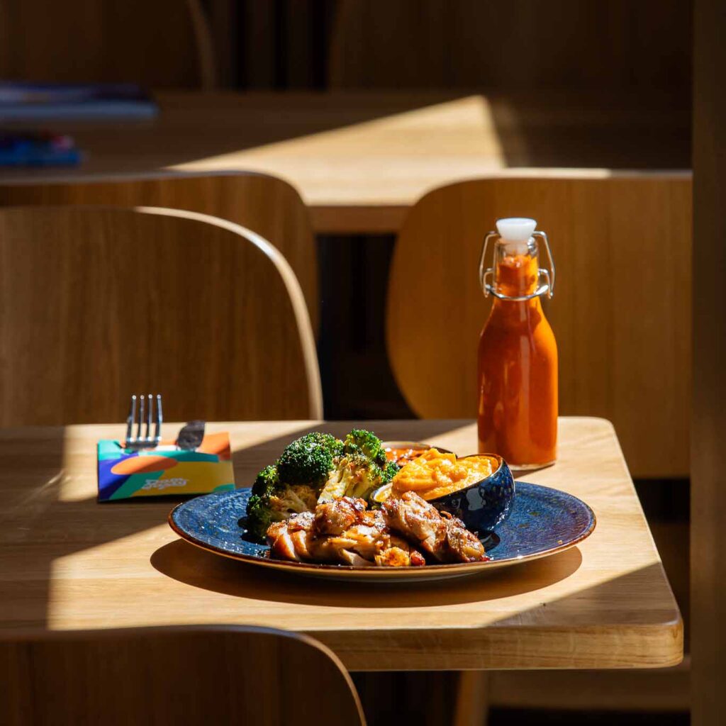 Your go-to-place to get your morning caffeine fix and a protein-packed shake to start your day right. Or you can stay and chill, watch us cook and enjoy a freshly prepared meal.