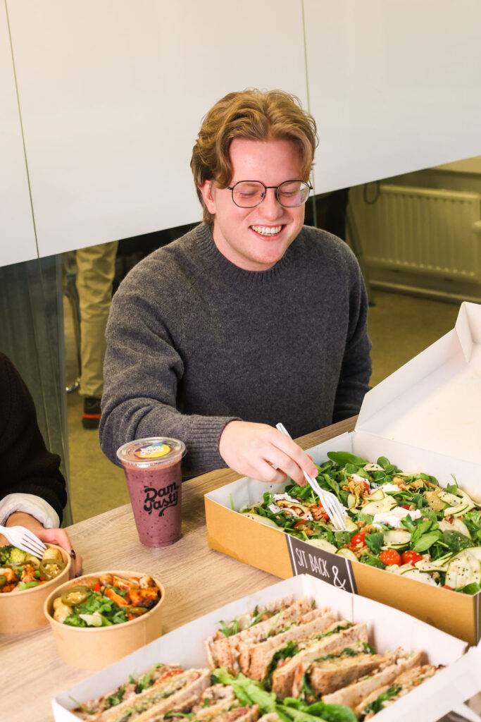 Geen ingewikkelde contracten, geen eindeloze menukeuzes. In drie stappen staat jouw team-lunch op kantoor:
